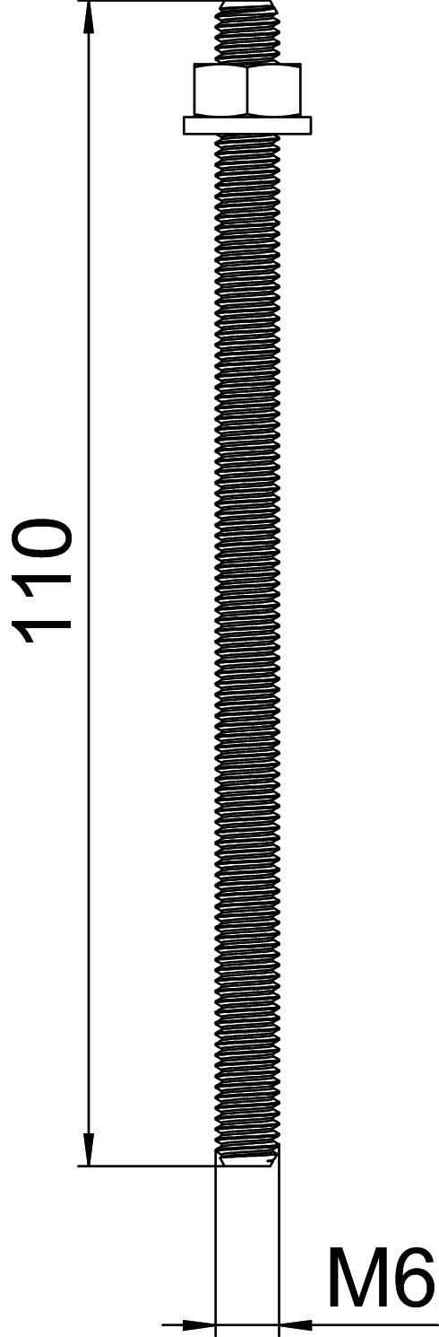 Colour zinc Depth marking no Diameter 6 mm Dimension 6x110 Dimension d 6 mm Dimension D 6 mm Dimension L 110 mm Length 110 mm Material Steel Resistance grade 5.8 Surface Electrogalvanized Thread M6 Thread metric 6 Thread type Metric With external thread yes - All types