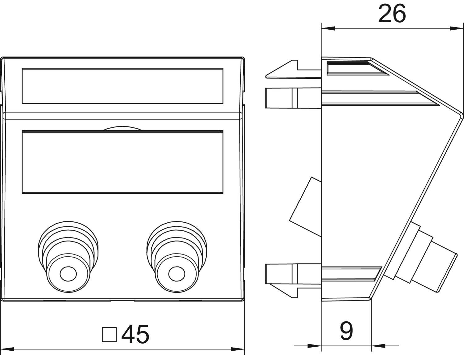 Product descriptionMultimedia support with two cinch connection sockets for audio R/L, slanting cable outlet, with labelling panel, two cinch couplings (RCA), socket-socket version, colour coding red/white. Support plate with locking fastening, suitable for horizontal and vertical installation in the system environment.