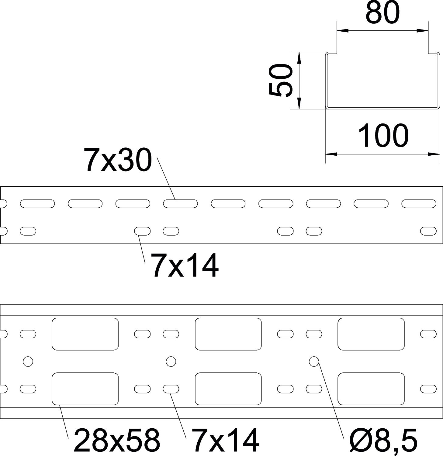 CO2 Footprint (GWP) Cradle-to-Gate 5,2765 kg CO2e / 1 Meter Colour zinc Connector version Without connectors Dimension 50x100x3000 Height 50 mm Length 3000 mm Maintain electrical functions no Material Steel Mounting perforation in base yes NATO hole pattern no Plate thickness 1,5 mm Rustproof steel, pickled no Side perforation yes Support spacing 1.0 m 3 kN/m Support spacing 1.5 m 2,4 kN/m Support spacing 2.0 m 1,4 kN/m Support spacing 2.5 m 0,8 kN/m Support spacing 3.0 m 0,25 kN/m Surface Hot-dip galvanised Usable cross-section 50 cm² Usable cross-section 5000 mm² Wide-span version no Width 100 mm Technical data