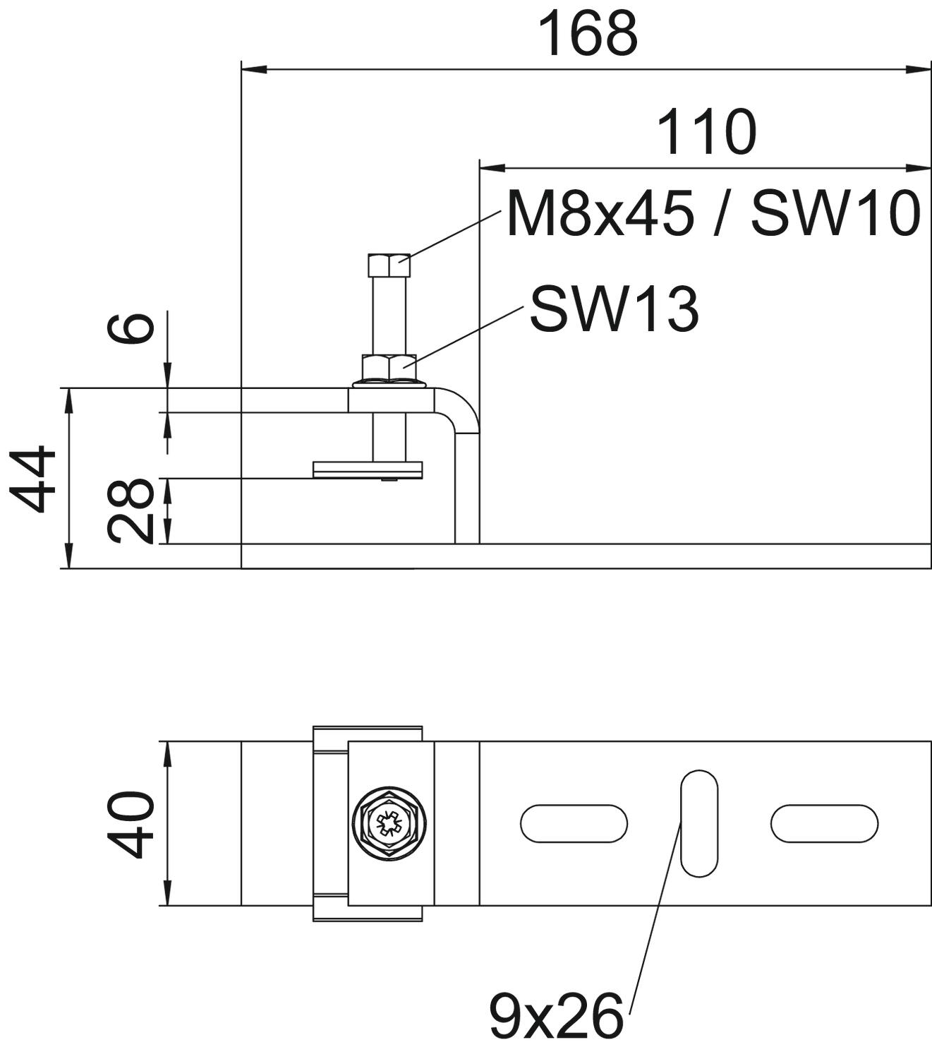 Colour zinc Dimension 168x44x40 Height 32 mm Length 168 mm Material Steel Material thickness 6 mm Permitted temperature range, max. 120 °C Permitted temperature range, min. -20 °C Rustproof steel, pickled no Surface Hot-dip galvanised Width 110 mm - All types