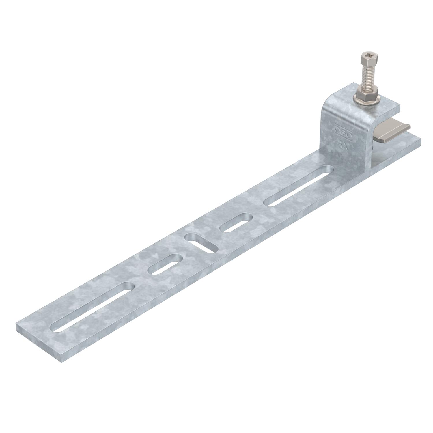Product descriptionBeam clamp for mounting light components on horizontal steel beams. Suitable, for example, for mesh cable trays and cable trays to 300 mm width or clips. The direction of the cable support system attached to the beam clamp is horizontal.