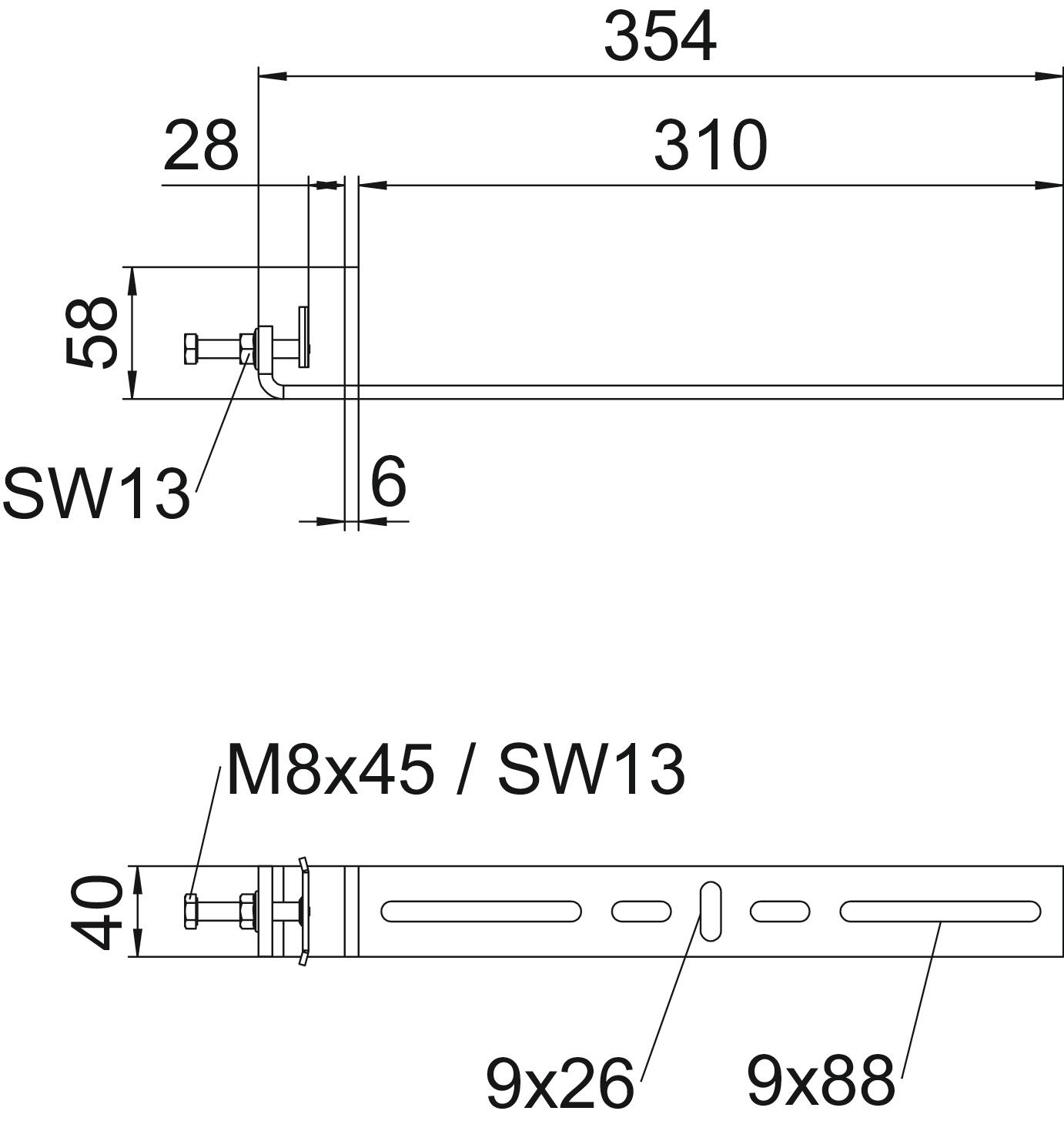 Colour stainless steel Dimension 354x58x40 Height 58 mm Length 348 mm Material Stainless steel 1.4301 Material thickness 6 mm Permitted temperature range, max. 120 °C Permitted temperature range, min. -20 °C Rustproof steel, pickled yes Surface Bright, treated Width 310 mm - All types
