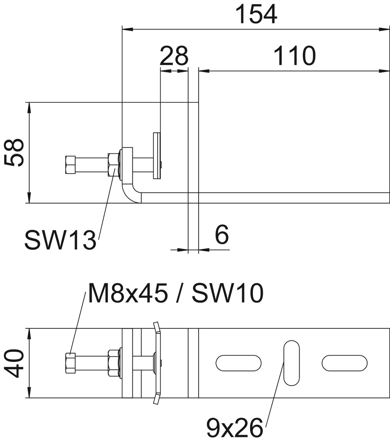 Colour zinc Dimension 154x58x40 Height 58 mm Length 148 mm Material Steel Material thickness 6 mm Permitted temperature range, max. 120 °C Permitted temperature range, min. -20 °C Rustproof steel, pickled no Surface Hot-dip galvanised Width 110 mm - All types