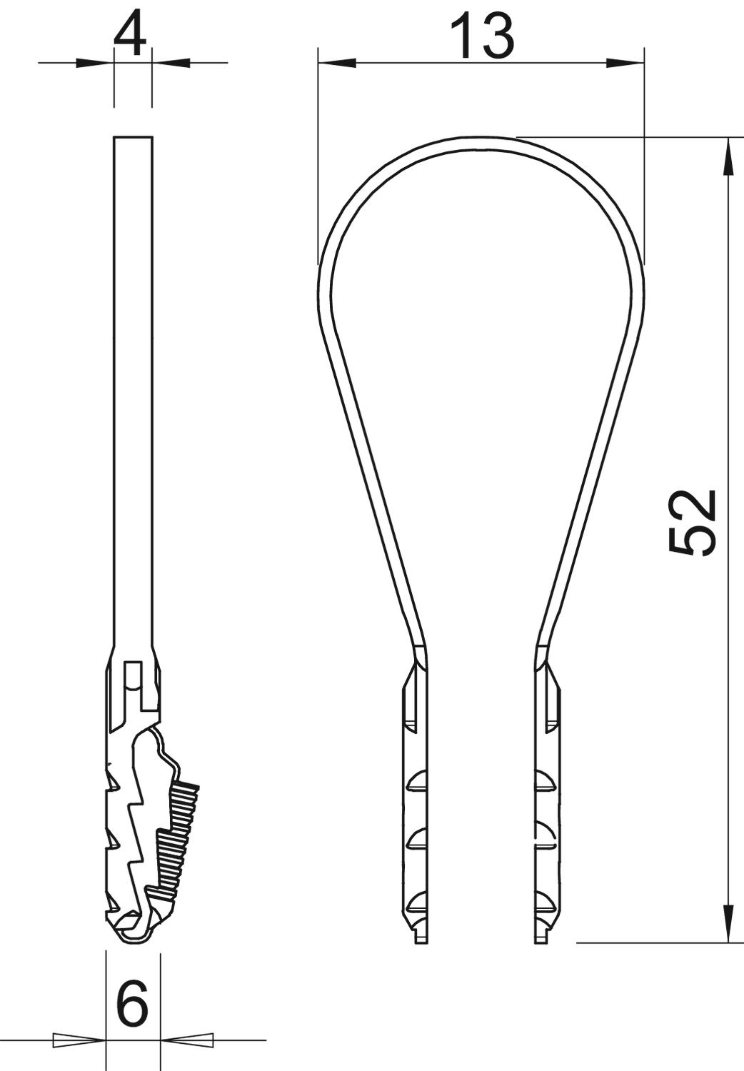 Clamping range D, max. 13 mm Clamping range D, min. 3 mm CO2 Footprint (GWP) Cradle-to-Gate 0,0053 kg CO2e / 1 Piece Colour Light grey; RAL 7035 Dimension 3-13mm Dimension D 13 mm Dimension L 52 mm Drill hole depth 50 mm Drill hole diameter, min. 6 mm Fastening type Plug fastening Halogen-free yes Material Polyamide Pull-out value 500 N Version for Closed - All types