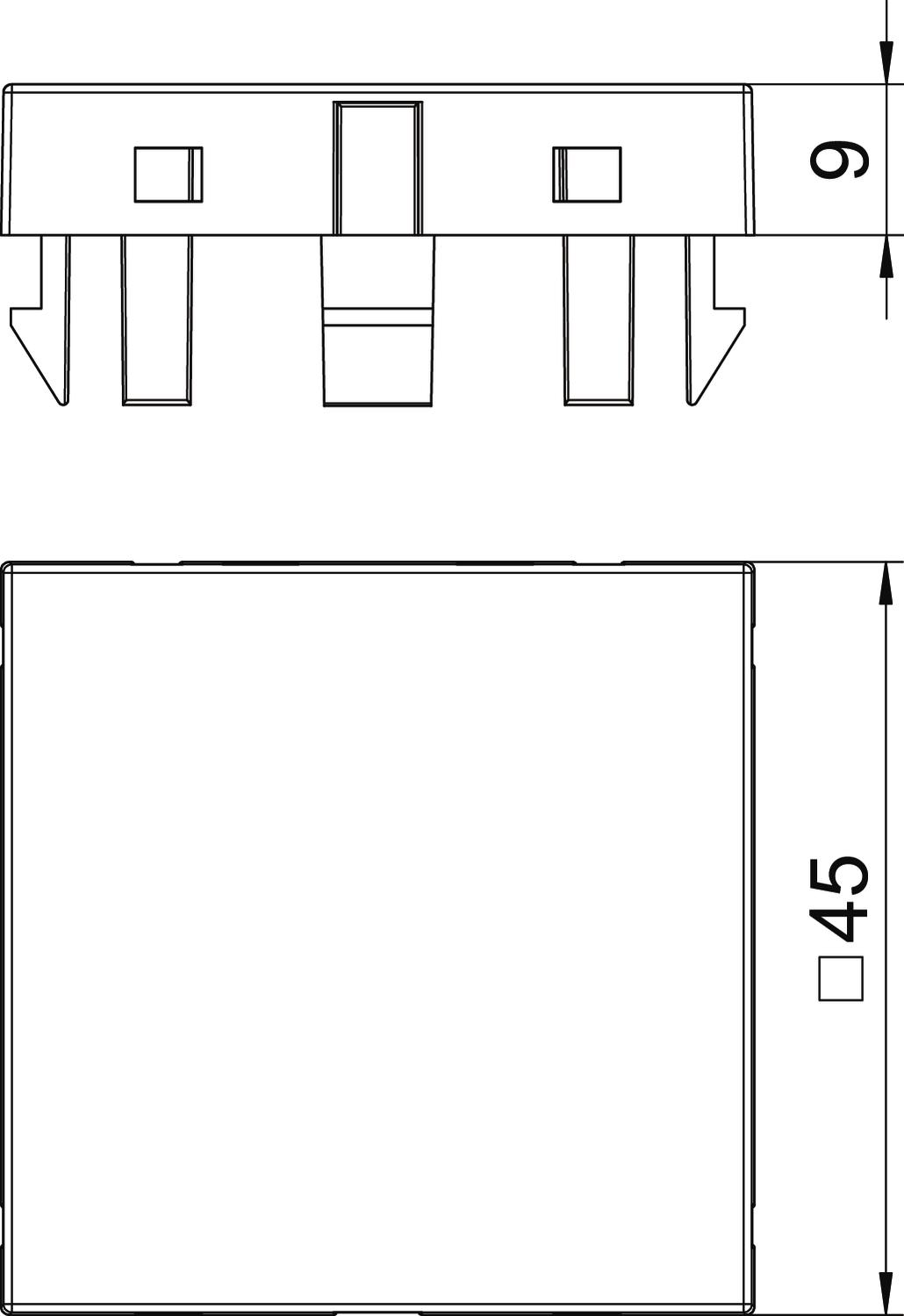 Antibacterial treatment no Changeable lense/symbol no CO2 Footprint (GWP) Cradle-to-Gate 0,0612 kg CO2e / 1 Piece Colour Pure white; RAL 9010 Depth 9 mm Dimension 45x45mm Fastening type Clamp fastening Flush-mounted version yes Halogen-free no Height 45 mm Hinged cover no Mounting direction Horizontal Printed push-button label Without Protection rating Other Scannable symbol/barrier-free [Bitte prüfen, ob so gemeint. Ist das technische Scannen gemeint oder aber das Fühlen vom Symbol no Suitable for built-in installations no Suitable for device installation ducts yes Suitable for flush-mounted installations no Suitable for underfloor duct socket no Surface version Matt Text field/inscription field no Transparent no Use of cover/operating element for installation switch programme Panel Version for cover/operating element for installation switch programme Blanking cover Width 45 mm - All types
