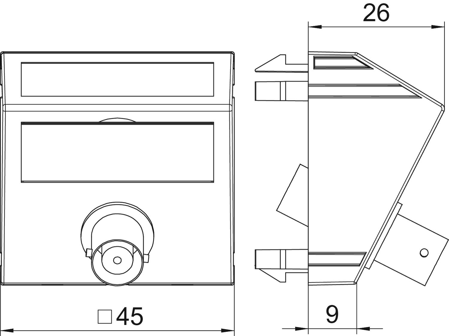 Product descriptionMultimedia support with one BNC connection socket, slanting cable outlet, with labelling panel, BNC coupling, socket-socket version. Support plate with locking fastening, suitable for horizontal and vertical installation in the system environment.