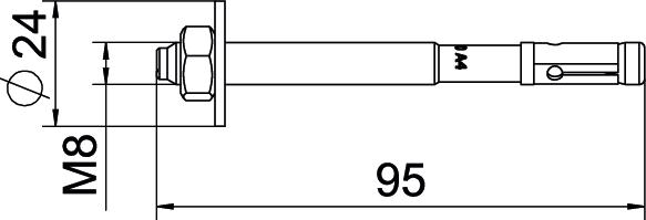 Anchor/nail/bolt version Spreading anchor Clamping range, max. 40 mm Colour stainless steel Dimension M8x95 Dimension L 95 mm Drill hole depth 55 mm Drill hole diameter, min. 8 mm ETA earthquake rating C1 and C2 Fire protection class to EN 13501-2 Other Length 95 mm Material Stainless steel Mounting type, anchor, tie Pre-mounting Surface Bright, treated Thread M8 Thread length 53 mm Thread metric 8 Thread type Metric Thread, imperial 5/16" Tie fastening device Nut Tie screw system Hexagon head Version for For knocking in Version, tie External thread WAF 13 - All types