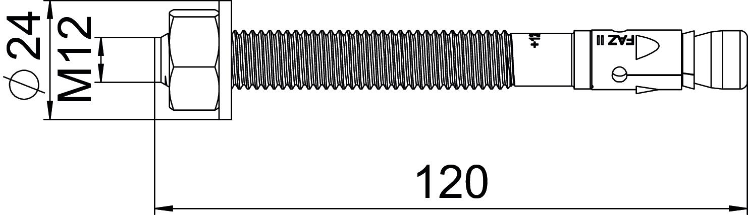 Anchor/nail/bolt version Spreading anchor Approvals available yes Clamping range, max. 40 mm Clamping range, min. 20 mm Colour stainless steel Dimension M12x120 Dimension L 120 mm Drill hole diameter, min. 12 mm Length 120 mm Material Stainless steel Thread M12 Thread length 71 mm Thread metric 12 Thread type Metric Version for For pushing in - All types