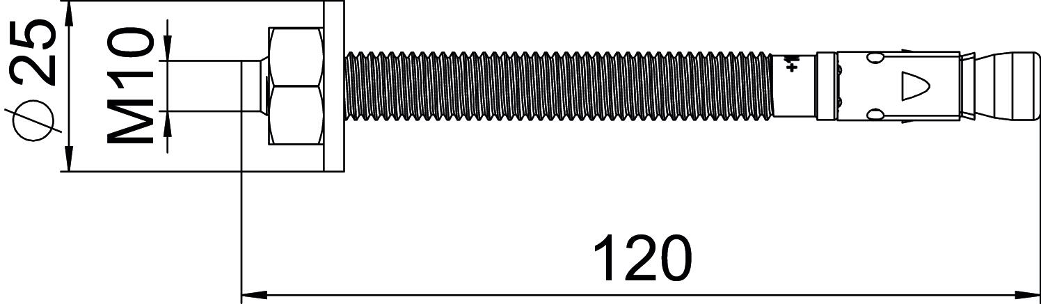 Anchor/nail/bolt version Spreading anchor Approvals available yes Clamping range, max. 50 mm Clamping range, min. 30 mm Colour zinc Dimension M10x115 Dimension L 115 mm Drill hole diameter, min. 10 mm Length 115 mm Material Steel Surface Electrogalvanized Thread M10 Thread length 73 mm Thread metric 10 Thread type Metric Version for For pushing in - All types