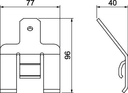 Colour stainless steel Dimension 77x96x40 Equipotential bonding version, device installation duct Clamp spring Height 40 mm Length 77 mm Material Stainless steel 1.4310 Permitted temperature range, max. 60 °C Permitted temperature range, min. -5 °C Protection rating IP30 Protection rating IK code IK07. Surface Bright, treated Width 96 mm - All types