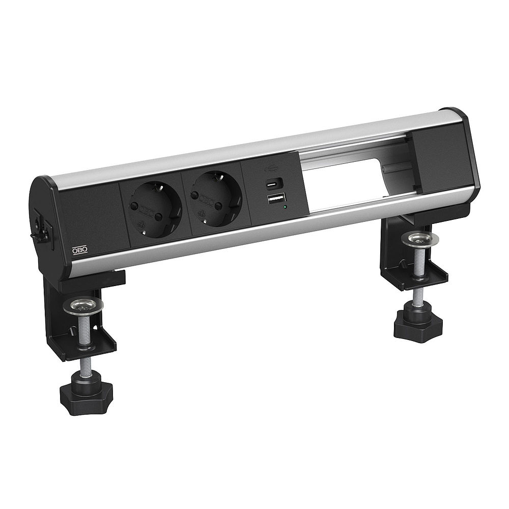 The Deskbox DBL is particularly easy to install. Its Wieland connector system guarantees that, and also makes a combination with power distributors possible. As OBO always attempts to offer the best possible and most individually suitable solution to its customers, variants of the Deskbox are available with the WAGO connector system on request. Empty housings with the Wieland connector system are also available to equip yourself. The Deskbox DBL desktop solution can easily be expanded using OBO's own Modul45 connector system. Variants with Schuko and USB charger as well as multimedia connections are available. The pre-equipped multimedia versions of the tabletop socket for the desk have a large opening in the rear wall, using which the multimedia cables can be inserted easily and without strain relief.