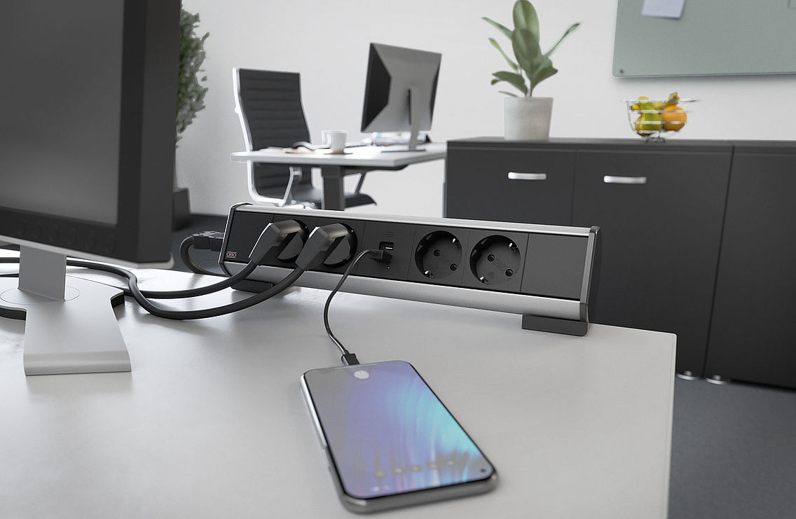 OBO presents the new Deskbox DBL: It offers direct access to power, data and multimedia connections at your workplace. It converts any desk into a complete office. The tabletop socket stands out through its discreet and elegant design and blends in unnoticed with the working environment.
