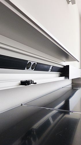 The GAD device installation trunking is characterised by its minimalist form and the elegant, solid front made of anodised aluminium. During anodising, metal surfaces are electrically oxidised. This creates an extremely hard, scratch-resistant surface. Anodising is a treatment method that does not use any foreign material, which preserves the metallic character of the aluminium. At the same time, this creates reliable corrosion protection.