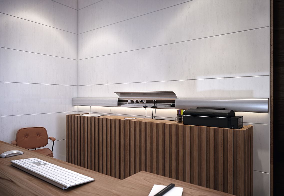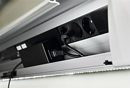 The refined appearance and high-quality design of the trunking can become even bigger stars of the show, thanks to an optional LED light bar that can be mounted on the underside of the GAD device installation trunking, providing discreet illumination of walls and the surfaces below the trunking.