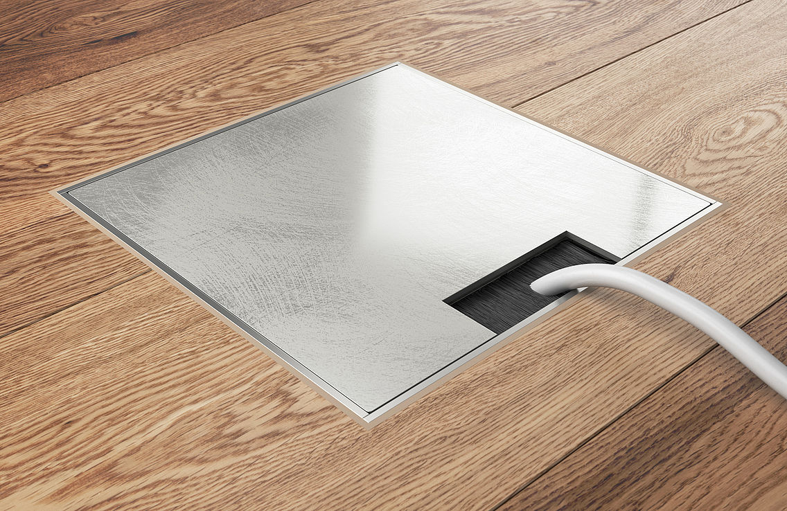 The UDHOME product family stands for variety: The UDHOME-ONE and UDHOME2 floor sockets are also available in a variant with brush outlet – each with and without a floor covering recess in the cover. This variant is certified and designed for Europe-wide use.