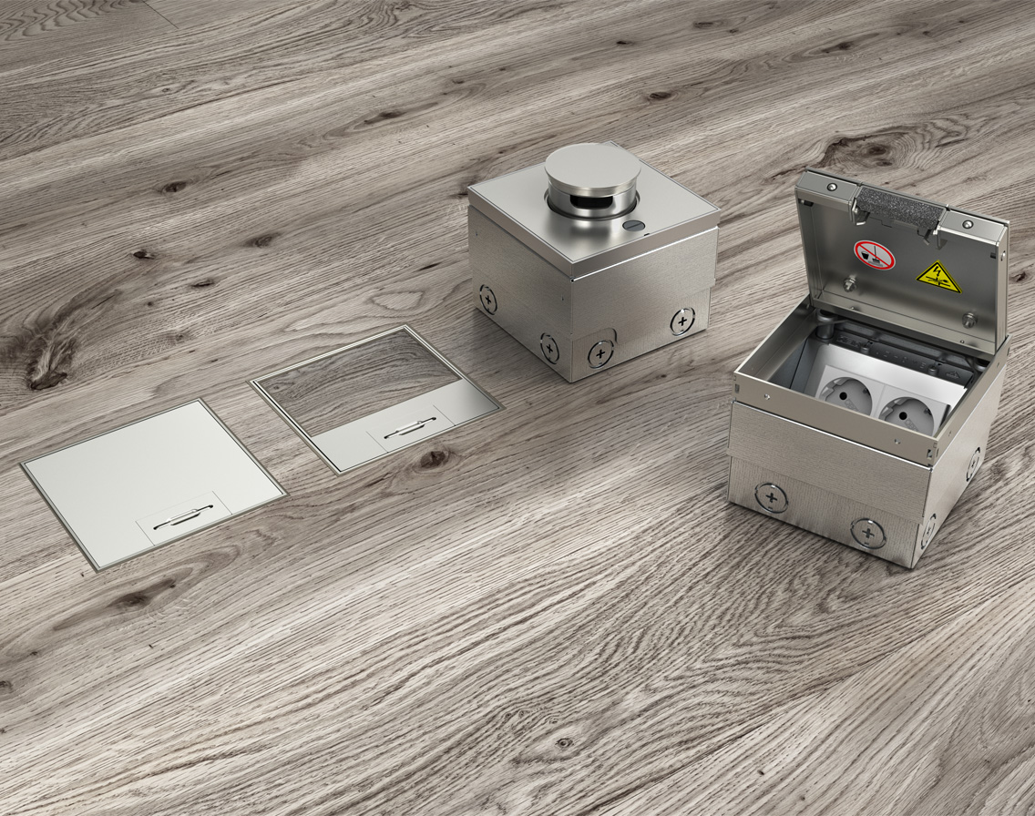 The UDHOME2 is available in variants with a decorative cover or with a floor covering recess in stainless steel or brass. Particularly versatile: The decorative covers can be exchanged at any time and thus be adapted to the room design. In the version with tube body and stainless steel lid, the small floor socket achieves an IP45 protection rating, meaning that it is even suitable for use in wet-cleaned floors, such as parquet or laminate. In the case of the variant with floor covering recess, floor coverings made of stone, tile, plastic or wood can be integrated easily in the cover.