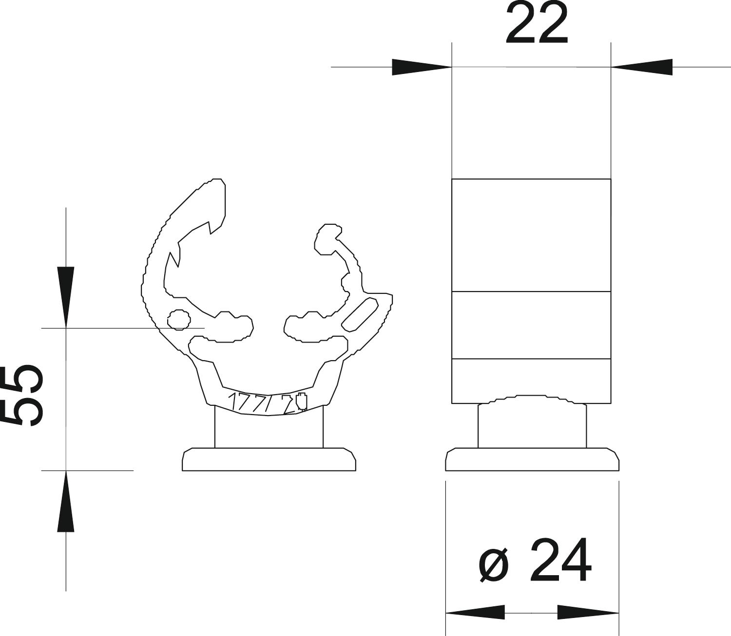 Cable dimensions 8−10 mm round CO2 Footprint (GWP) Cradle-to-Gate 0,0786 kg CO2e / 1 Piece Colour Copper Conductor fastening type With clamp clip Dimension 55mm Fit Rd 8-10 mm Holder fastening type Drill hole with M-thread Material Polyamide Material of the base Polyamide Material of the crossbar Polyamide Material of the holder Polyamide Mounting height 55 mm Thread metric 8 - All types