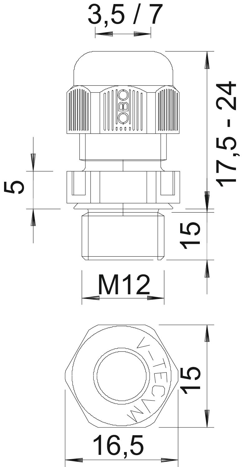 Bend protection no CO2 Footprint (GWP) Cradle-to-Gate 0,0256 kg CO2e / 1 Piece Colour Silver grey; RAL 7001 Dimension M12 Dimension E 16,5 mm Dimension L max. 24 mm Dimension L min. 17,5 mm Dimension L1 15 mm Dimension L2 5 mm explosion-proof no Fibre-glass reinforced no Flame-resistant acc. to VDE 0471/DIN 695 Part 2-1, test temperature 650°C Flat cable gland no For Ex zone Without For Ex zone dust Without For Ex zone gas Without Halogen-free yes Hexagonal corner dimension 16,5 mm Impact-resistant no Material Polyamide Nominal thread size 12 Permitted temperature range, max. 65 °C Permitted temperature range, min. -20 °C Protection rating IP68 Sealing area D, max. 7 mm Sealing area D, min. 3,5 mm Sealing insert, multiple no Splittable gland no Strain relief option yes Thread M12 x 1,5 Thread increase 1,5 mm Thread length 15 mm Thread type Metric Type of seal Sealing ring Unstable torque 2 Nm Version for Straight WAF 15 With locknut no - All types