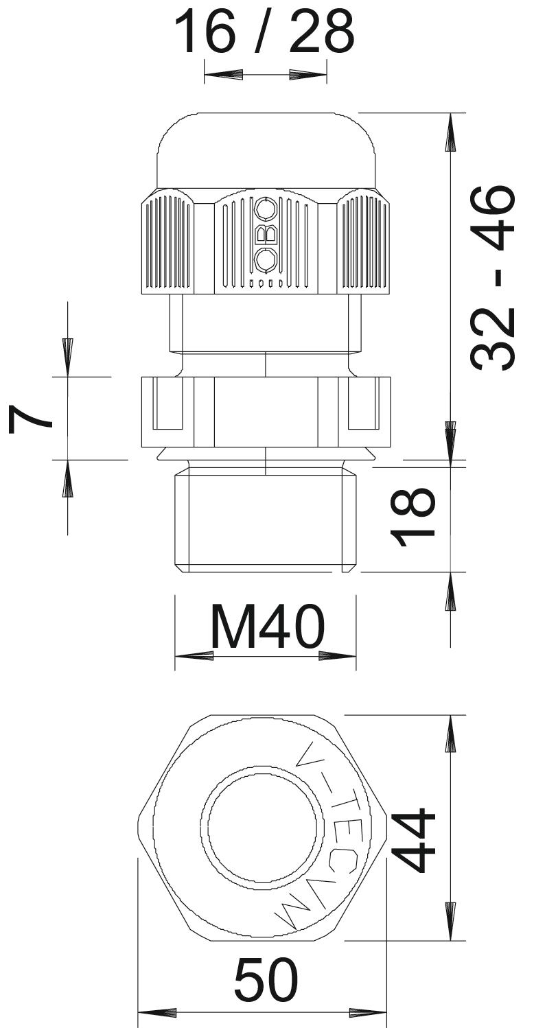 Bend protection no CO2 Footprint (GWP) Cradle-to-Gate 0,1795 kg CO2e / 1 Piece Colour Silver grey; RAL 7001 Dimension M40 Dimension E 50 mm Dimension L max. 46 mm Dimension L min. 32 mm Dimension L1 18 mm Dimension L2 7 mm explosion-proof no Fibre-glass reinforced no Flame-resistant acc. to VDE 0471/DIN 695 Part 2-1, test temperature 650°C Flat cable gland no For Ex zone Without For Ex zone dust Without For Ex zone gas Without Halogen-free yes Hexagonal corner dimension 50 mm Impact-resistant no Material Polyamide Nominal thread size 40 Permitted temperature range, max. 65 °C Permitted temperature range, min. -20 °C Protection rating IP68 Sealing area D, max. 28 mm Sealing area D, min. 16 mm Sealing insert, multiple no Splittable gland no Strain relief option yes Thread M40 x 1,5 Thread increase 1,5 mm Thread length 18 mm Thread type Metric Type of seal Sealing ring Unstable torque 10 Nm Version for Straight WAF 44 With locknut no - All types