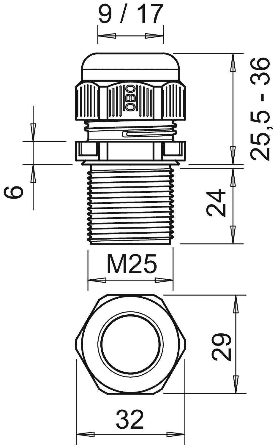 Bend protection no CO2 Footprint (GWP) Cradle-to-Gate 0,0763 kg CO2e / 1 Piece Colour Black Dimension M25 Dimension E 32 mm Dimension L max. 36 mm Dimension L min. 25,5 mm Dimension L1 24 mm Dimension L2 6 mm explosion-proof no Fibre-glass reinforced no Flame-resistant acc. to VDE 0471/DIN 695 Part 2-1, test temperature 650°C Flat cable gland no For Ex zone Without For Ex zone dust Without For Ex zone gas Without Halogen-free yes Hexagonal corner dimension 32 mm Impact-resistant no Material Polyamide Nominal thread size 25 Permitted temperature range, max. 65 °C Permitted temperature range, min. -20 °C Protection rating IP68 Sealing area D, max. 17 mm Sealing area D, min. 9 mm Sealing insert, multiple no Splittable gland no Strain relief option yes Thread M25 x 1,5 Thread increase 1,8 mm Thread length 24 mm Thread type Metric Type of seal Sealing ring Unstable torque 5 Nm Version for Straight WAF 29 With locknut no - All types