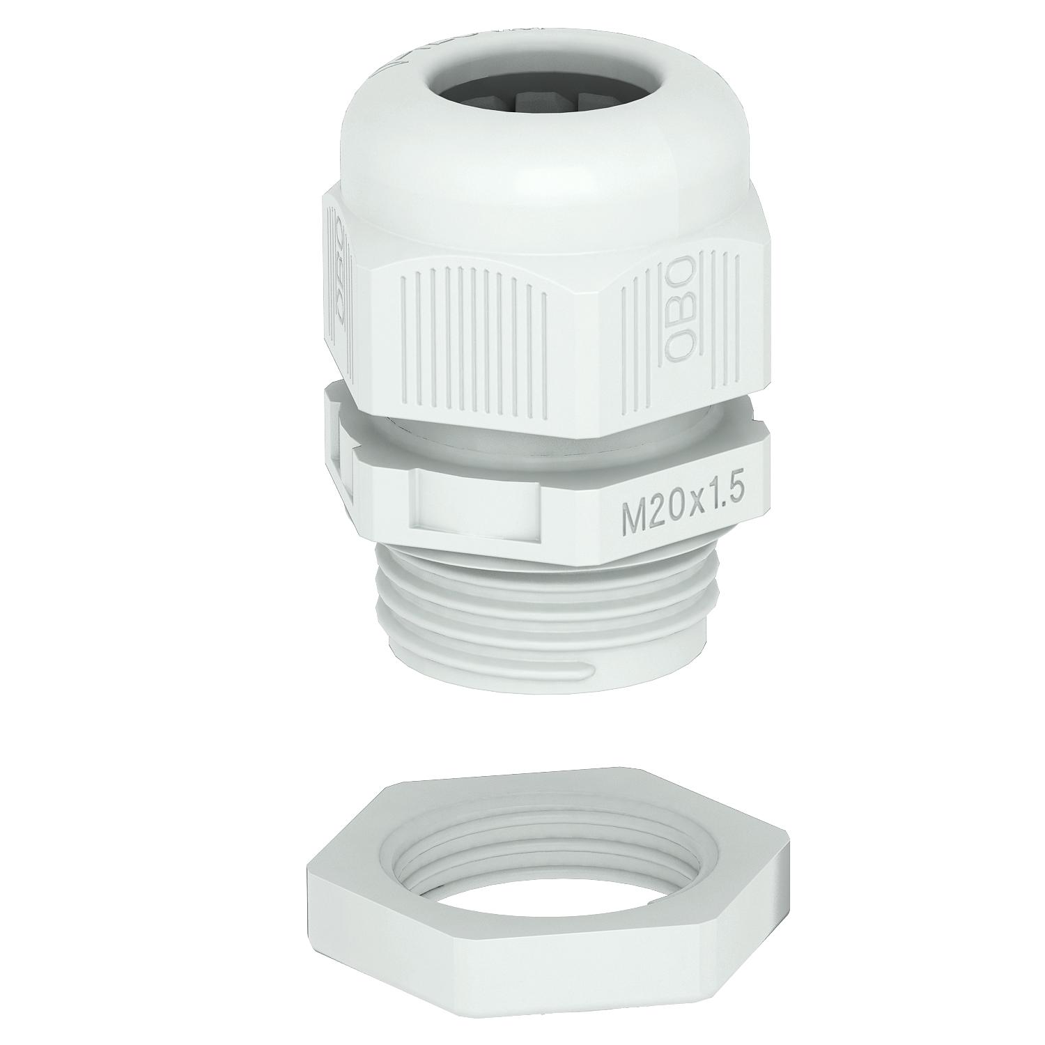 Product descriptionCable gland with metric connection thread in cap nut design, suitable for junction boxes, housings, distributor cabinets in private and industrial areas. With strain relief and integrated sealing lip, tested according to DIN EN 62444. Protection class IP68. Can be used between –20°C and +65°C. Including locknut.