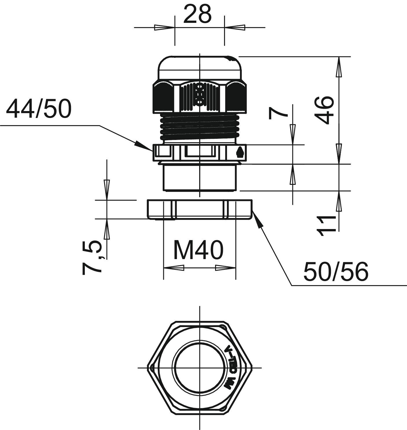 Bend protection no CO2 Footprint (GWP) Cradle-to-Gate 0,1889 kg CO2e / 1 Piece Colour Pastel orange; RAL 2003 Dimension M40 Dimension E 50 mm Dimension E1 (mm) 50 mm Dimension E2 56 mm Dimension G M40 x 1,5 mm Dimension L max. 46 mm Dimension L min. 36 mm Dimension L1 11 mm Dimension L2 7 mm Dimension L3 7,5 mm Fibre-glass reinforced no Flame-resistant acc. to VDE 0471/DIN 695 Part 2-1, test temperature 650°C Flat cable gland no For Ex zone Without For Ex zone dust Without For Ex zone gas Without Halogen-free yes Impact-resistant no Material Polyamide Permitted temperature range, max. 65 °C Permitted temperature range, min. -20 °C Protection rating IP68 Sealing area D, max. 28 mm Sealing area D, min. 16 mm Sealing insert, multiple no Splittable gland no Strain relief option yes Thread M40 x 1,5 Thread increase 1,5 mm Thread length 11 mm Thread type Metric Unstable torque 10 Nm WAF 44 WAF 1 44 mm WAF 2 50 mm With locknut yes - All types