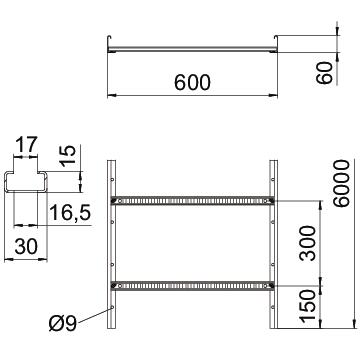 Product descriptionCable ladder with 60 mm side height with welded C30 profile rungs which are open in an upwards direction. Rolled side rail for reinforcement and as edge protection. Fastening to the bracket takes place using clamps, type LKS 40. The slot dimension of the frame is 16.5 mm and the appropriate clamp clip is type 2056.