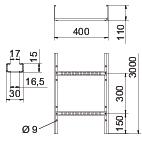 CO2 Footprint (GWP) Cradle-to-Gate 10,1723 kg CO2e / 1 Meter Colour zinc Dimension 110x400x3000 Dimension 110x400x3000 Dimension B 400 mm Fastening of rung Blind riveted Height 110 mm Length 3000 mm Maintain electrical functions no Material Steel Rail thickness 1,5 mm Rung distance 300 mm Rung slot dimension 16,50 Rustproof steel, pickled no Side perforation yes Side rail version Flat profile Support spacing 2.0 m 3,1 kN/m Support spacing 2.5 m 2 kN/m Support spacing 3.0 m 1,4 kN/m Support spacing 3.5 m 0,9 kN/m Support spacing 4.0 m 0,65 kN/m Support spacing 4.5 m 0,55 kN/m Support spacing 5.0 m 0,5 kN/m Support spacing 6.0 m 0,15 kN/m Surface Strip galvanized Usable cross-section 378 cm² Usable cross-section 37800 mm² Version of the rungs Profile perforated Wide-span version no Width 400 mm Technical data