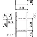CO2 Footprint (GWP) Cradle-to-Gate 9,2764 kg CO2e / 1 Meter Colour zinc Dimension 110x300x3000 Dimension 110x300x3000 Dimension B 300 mm Fastening of rung Blind riveted Height 110 mm Length 3000 mm Maintain electrical functions no Material Steel Rail thickness 1,5 mm Rung distance 300 mm Rung slot dimension 16,50 Rustproof steel, pickled no Side perforation yes Side rail version Flat profile Support spacing 2.0 m 3,1 kN/m Support spacing 2.5 m 2 kN/m Support spacing 3.0 m 1,4 kN/m Support spacing 3.5 m 0,9 kN/m Support spacing 4.0 m 0,65 kN/m Support spacing 4.5 m 0,55 kN/m Support spacing 5.0 m 0,5 kN/m Support spacing 6.0 m 0,15 kN/m Surface Hot-dip galvanised Usable cross-section 28300 mm² Usable cross-section 283 cm² Version of the rungs Profile perforated Wide-span version no Width 300 mm Technical data