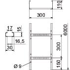 CO2 Footprint (GWP) Cradle-to-Gate 9,5934 kg CO2e / 1 Meter Colour zinc Dimension 110x300x6000 Dimension 110x300x6000 Dimension B 300 mm Fastening of rung Blind riveted Height 110 mm Length 6000 mm Maintain electrical functions no Material Steel Rail thickness 1,5 mm Rung distance 300 mm Rung slot dimension 16,50 Rustproof steel, pickled no Side perforation yes Side rail version Flat profile Support spacing 2.0 m 3,1 kN/m Support spacing 2.5 m 2 kN/m Support spacing 3.0 m 1,4 kN/m Support spacing 3.5 m 0,9 kN/m Support spacing 4.0 m 0,65 kN/m Support spacing 4.5 m 0,55 kN/m Support spacing 5.0 m 0,5 kN/m Support spacing 6.0 m 0,15 kN/m Surface Strip galvanized Usable cross-section 283 cm² Usable cross-section 28300 mm² Version of the rungs Profile perforated Wide-span version no Width 300 mm Technical data