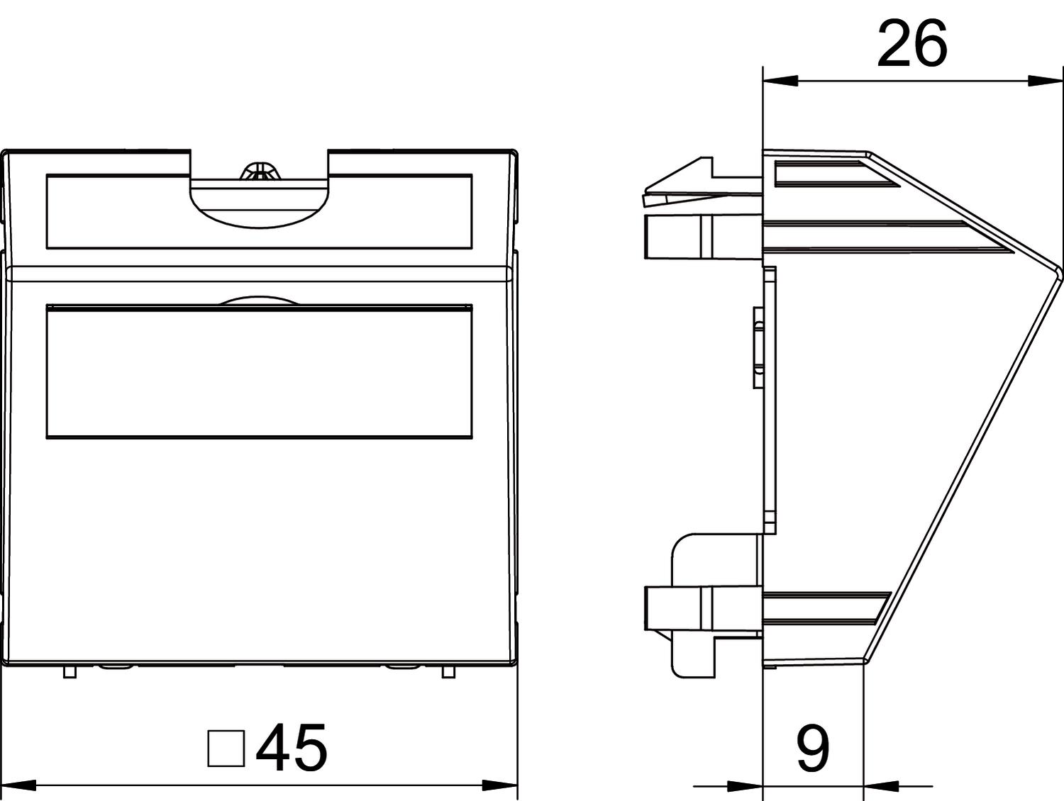 CO2 Footprint (GWP) Cradle-to-Gate 0,5489 kg CO2e / 1 Piece Colour Pure white; RAL 9010 Depth 26 mm Dimension 45x45mm Einbaubreite 45 mm Fastening type Clamp fastening Flush-mounted version yes Halogen-free yes Height 45 mm Hinged cover no Installation height 45 mm Material Polycarbonate Mounting direction Horizontal and vertical Number of units 1 Suitable for built-in installations no Suitable for device installation ducts yes Suitable for flush-mounted installations no Suitable for underfloor duct socket no Surface version Matt Text field/inscription field yes Transparent no Width 45 mm - All types