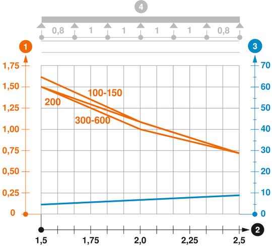 Load curve with cable tray/ladder width in mm