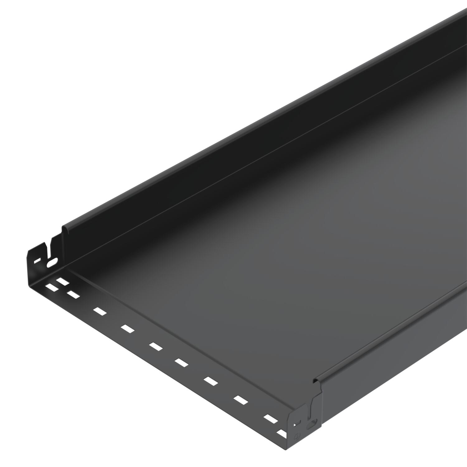 Product descriptionUnperforated cable tray with integrated quick fastening system. Black coated.