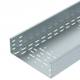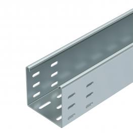 Cable tray with continuous bottom and side perforation as well as central holes (Ø11 mm) in the base for additional fastenings.