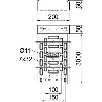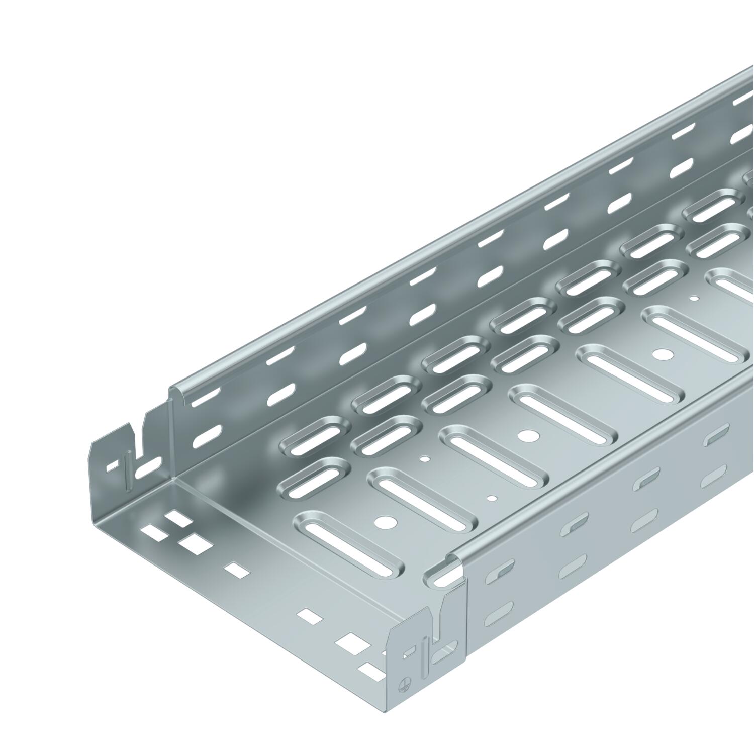 Product descriptionCable tray made from CO2-reduced steel, with integrated quick-fastening system. Usable length 3,000 mm. With continuous side perforation of 7 x 20 mm for the installation of connection and mounting components. 11 mm perforation in the base for direct threaded rod susptension