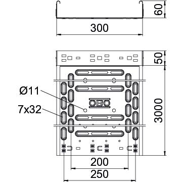 Product descriptionCable tray with integrated quick-fastening system. Strip-galvanised surface, visible areas powder-coated in jet black (RAL 9005). Continuous side perforations of 7 x 20 mm for the installation of additional connection and mounting components. With 11 mm perforation in the base for direct threaded rod suspension. Usable length 3,000 mm.
