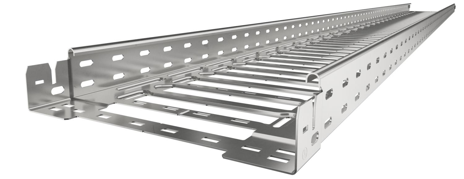 The cable tray has continuous side perforations of 7 x 20 mm for the installation of additional connection and mounting components.
