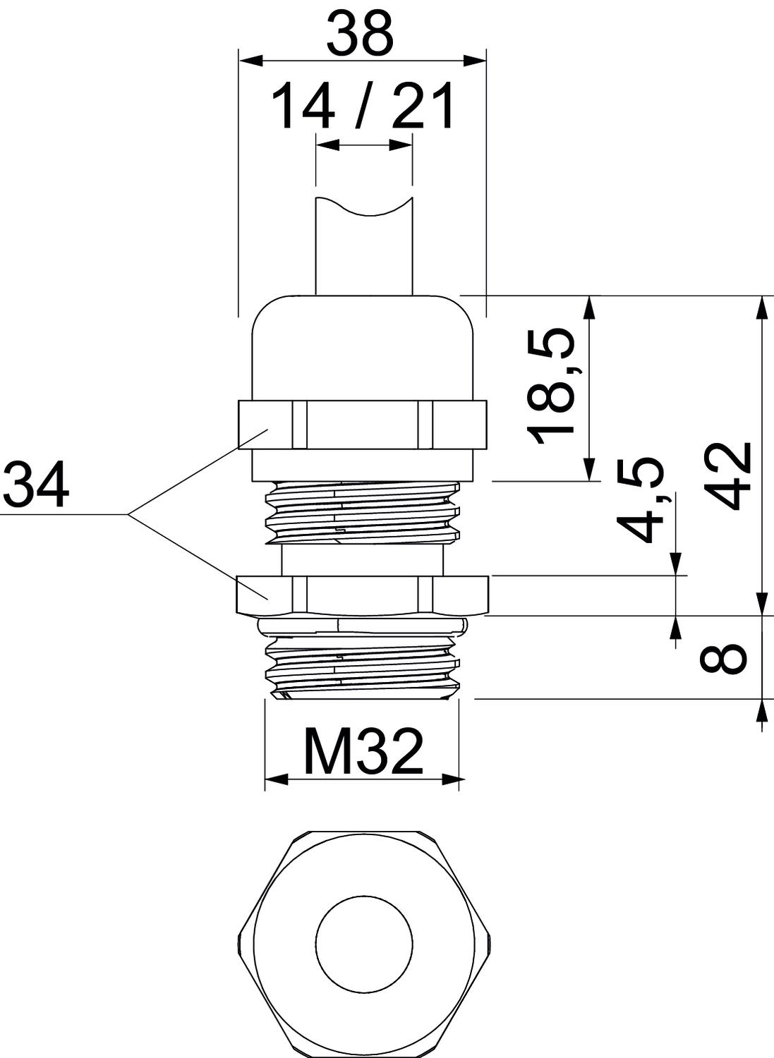 Bend protection no CO2 Footprint (GWP) Cradle-to-Gate 0,1919 kg CO2e / 1 Piece Dimension M32 Dimension E 38 mm Dimension L max. 42 mm Dimension L1 8 mm Dimension L2 4,5 mm Dimension L3 18,5 mm Fibre-glass reinforced no Flat cable gland no For Ex zone Without Halogen-free no Impact-resistant no Material Brass Permitted temperature range, max. 100 °C Permitted temperature range, min. -20 °C Protection rating IP68 Sealing area D, max. 21 mm Sealing area D, min. 14 mm Sealing insert, multiple no Strain relief option yes Surface Nickel-plated Thread M32 x 1,5 Thread length 8 mm Thread type Metric Type of seal Sealing ring Unstable torque 12 Nm Version for Straight WAF 34 With locknut no - All types
