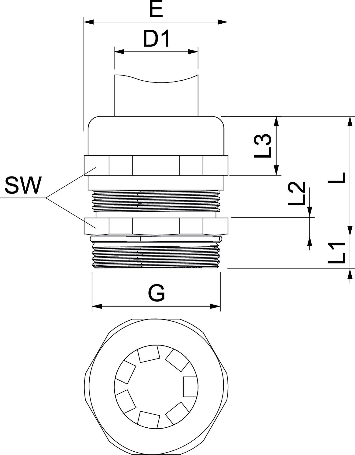 Product descriptionWith metric connecting thread to IEC 423, robust EMV cap-nut cable gland with large sealing area. The contact between the gland and braided shield is made using a contact spring. Strain relief, wringing protection and tightness over the whole clamping area. Neoprene sealing ring. Polyamide terminal insert. With pre-mounted O sealing ring on connection thread, protection rating IP 68 at 5 bar for 1 hr.