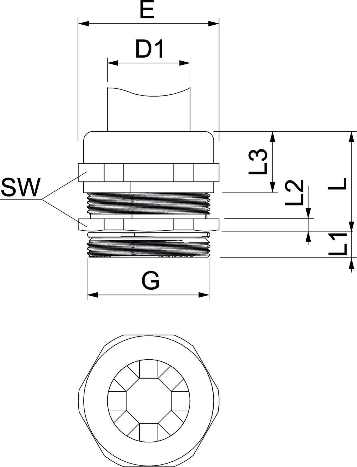 Bend protection no CO2 Footprint (GWP) Cradle-to-Gate 0,4394 kg CO2e / 1 Piece Dimension M40 Dimension D1 19 mm Dimension E 46 mm Dimension G M40x1,5 mm Dimension L 33 mm Dimension L1 8 mm Dimension L2 4,5 mm Dimension L3 16,4 mm Fibre-glass reinforced no Flat cable gland no For Ex zone Without Halogen-free no Height 41 mm Impact-resistant no Length 43 mm Material Brass Permitted temperature range, max. 100 °C Permitted temperature range, min. -20 °C Protection rating IP68 Sealing area D, max. 27 mm Sealing area D, min. 19 mm Sealing insert, multiple no Strain relief option yes Surface Nickel-plated Thread M40 x 1,5 Thread length 8 mm Type of seal Sealing ring Version for Straight WAF 43 Width 46 mm With locknut no - All types