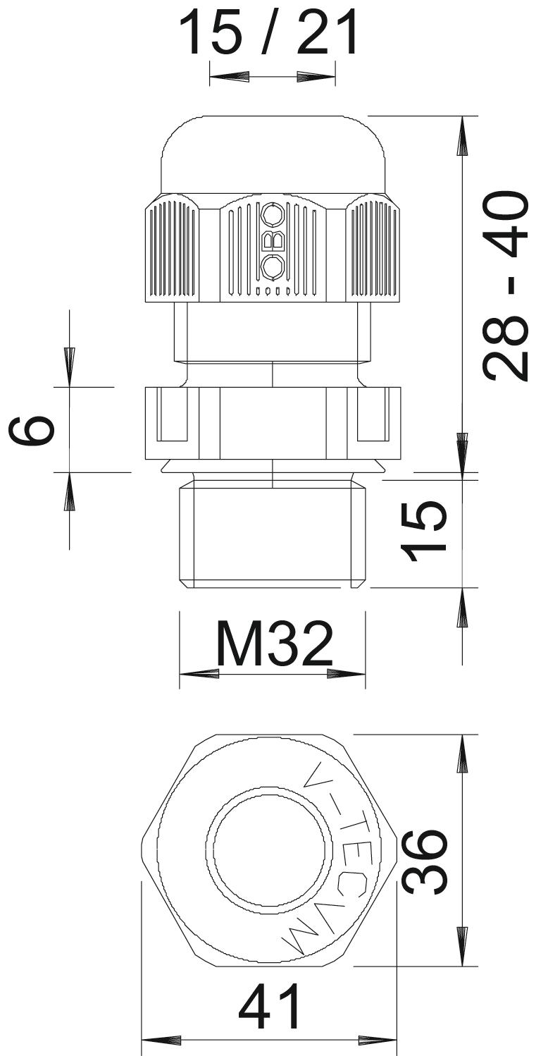 Product descriptionWith metric connecting thread to IEC 423, robust cap nut cable gland with large sealing area. Strain relief, wringing protection and tightness over the whole clamping area. For thicker housing wall thicknesses in conjunction with locknuts. Neoprene sealing ring. Polyamide terminal insert. With pre-mounted sealing ring on connection thread, VDE-tested to DIN EN 50262, protection rating IP 68 at 5 bar for 1 hr.