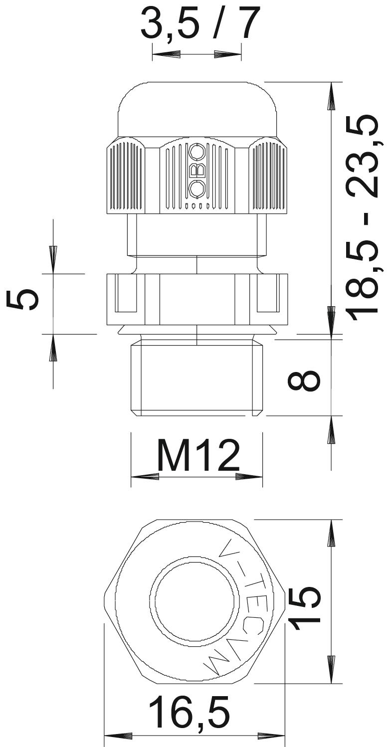 Product descriptionWith metric connecting thread to IEC 423, robust cap nut cable gland with large sealing area. Strain relief, wringing protection and tightness over the whole clamping area. Neoprene sealing ring. Polyamide terminal insert. With pre-mounted O sealing ring on connection thread, VDE-tested to DIN EN 50262, protection rating IP68 at 5 bar for 1 hr, max. permitted ambient temperature -20 to +100°C.