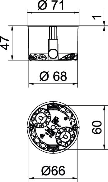 Airtight no Cable entries 3 x 1.5 mm² 2 Cable entries 3 x 2.5 mm² / 5 x 1.5 mm² 2 CO2 Footprint (GWP) Cradle-to-Gate 0,0768 kg CO2e / 1 Piece Colour Orange Combination entries Ø 20 / 25 mm 2 Cover Without Cover fastening Screws , Device fixing Screws , Diameter 68 mm Dimension Ø68mm, H47mm Flame-resistant Acc. to VDE 0471/IEC 60695-2-11, test temperature 850°C for pipe diameter 20/25 mm Halogen-free yes Height 47 mm Impact-resistant no Material Polypropylene Milling hole diameter 68 mm No. of entries 6 Nominal cross-section, max. 2,5 mm² Nominal cross-section, min. 1,5 mm² Number of switch boxes 1 Protection rating IP30 Rated voltage 400 V Shape Round Suitable for plate thickness, max. 40 mm Suitable for plate thickness, min. 5 mm Support Connector Type of entry NYM cables, data cables and corrugated pipes Type of housing penetration Break-out opening With bolts yes - All types