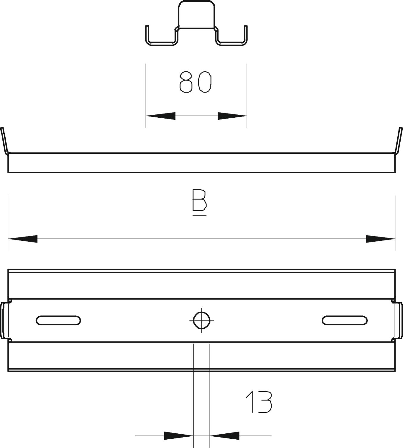 Adjustable no CO2 Footprint (GWP) Cradle-to-Gate 1,2558 kg CO2e / 1 Piece Colour zinc Dimension B200mm Height 15 mm Length 80 mm Maintain electrical functions no Material Steel Suitable for cable ladder yes Suitable for cable tray no Suitable for mesh cable tray no Suitable for metric threaded rod 12 Surface Hot-dip galvanised Tray fastening Screw-on Version for Suspended Width 200 mm - All types