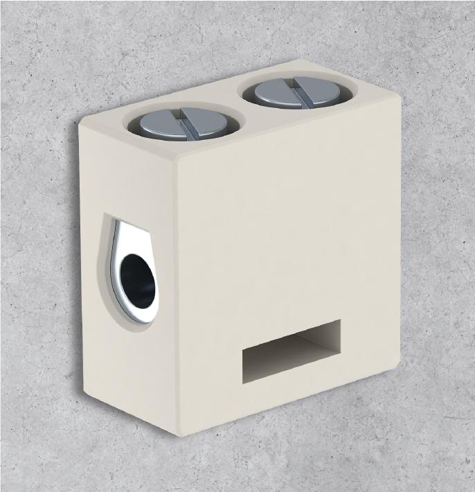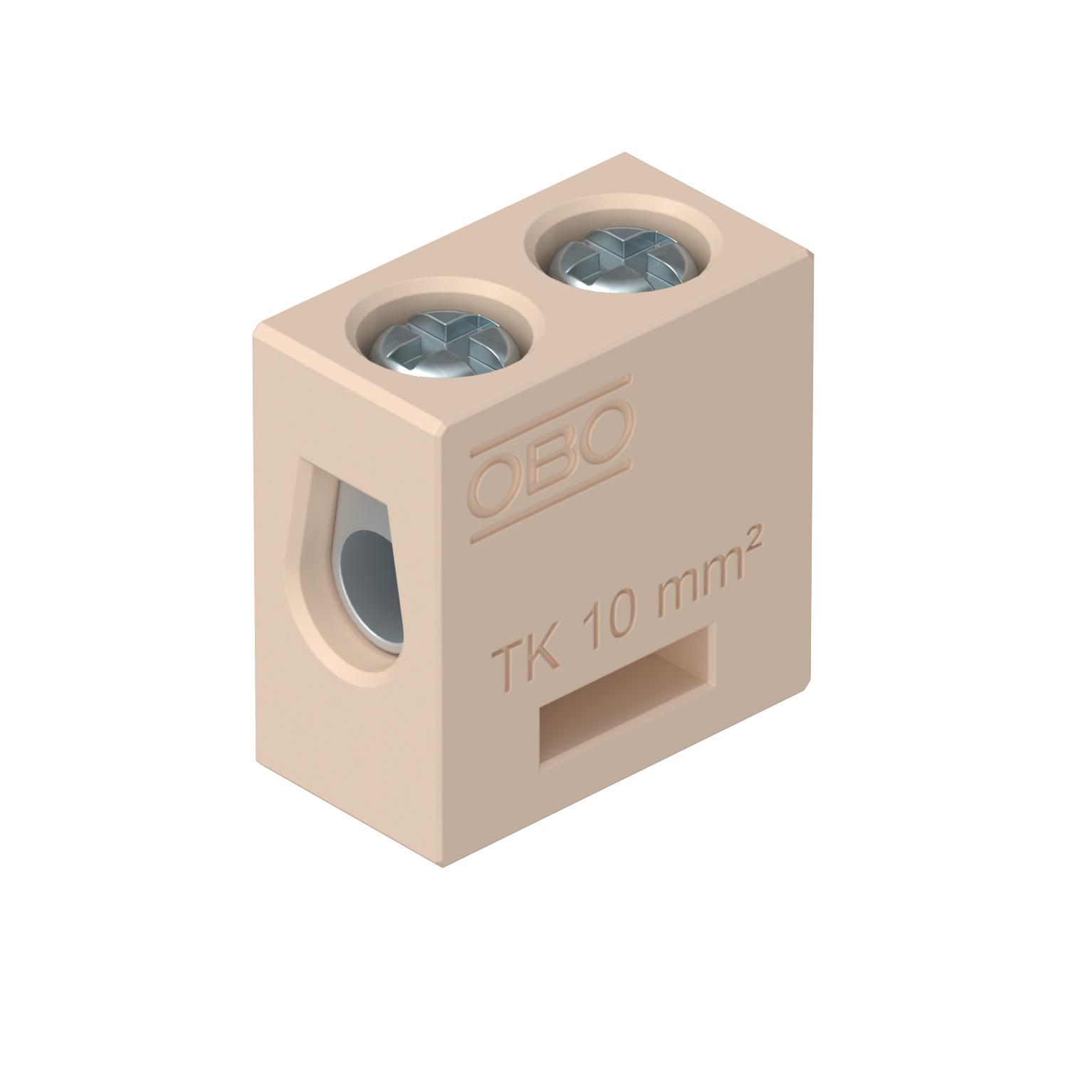 Closing plate required no CO2 Footprint (GWP) Cradle-to-Gate 0,0025 kg CO2e / 1 Piece Colour Cream Connectable conductor cross-section, single-wire, max. 10 mm² Connectable conductor cross-section, single-wire, min. 4 mm² Connection position Side Dimension 10 mm² Explosion-tested version no Height 24 mm Insulation material Ceramic Length 12,5 mm Material Steatit No. of terminals 2 Nominal cross-section, max. 10 mm² Nominal cross-section, min. 4 mm² Nominal current 57 A Nominal voltage 400 V Number of screwless terminals per pole 2 Permitted temperature range, max. 250 °C Pole number 1 Transparent no Version of electrical connection 1 Screw connection Version of electrical connection 2 Screw connection Width 24 mm - All types