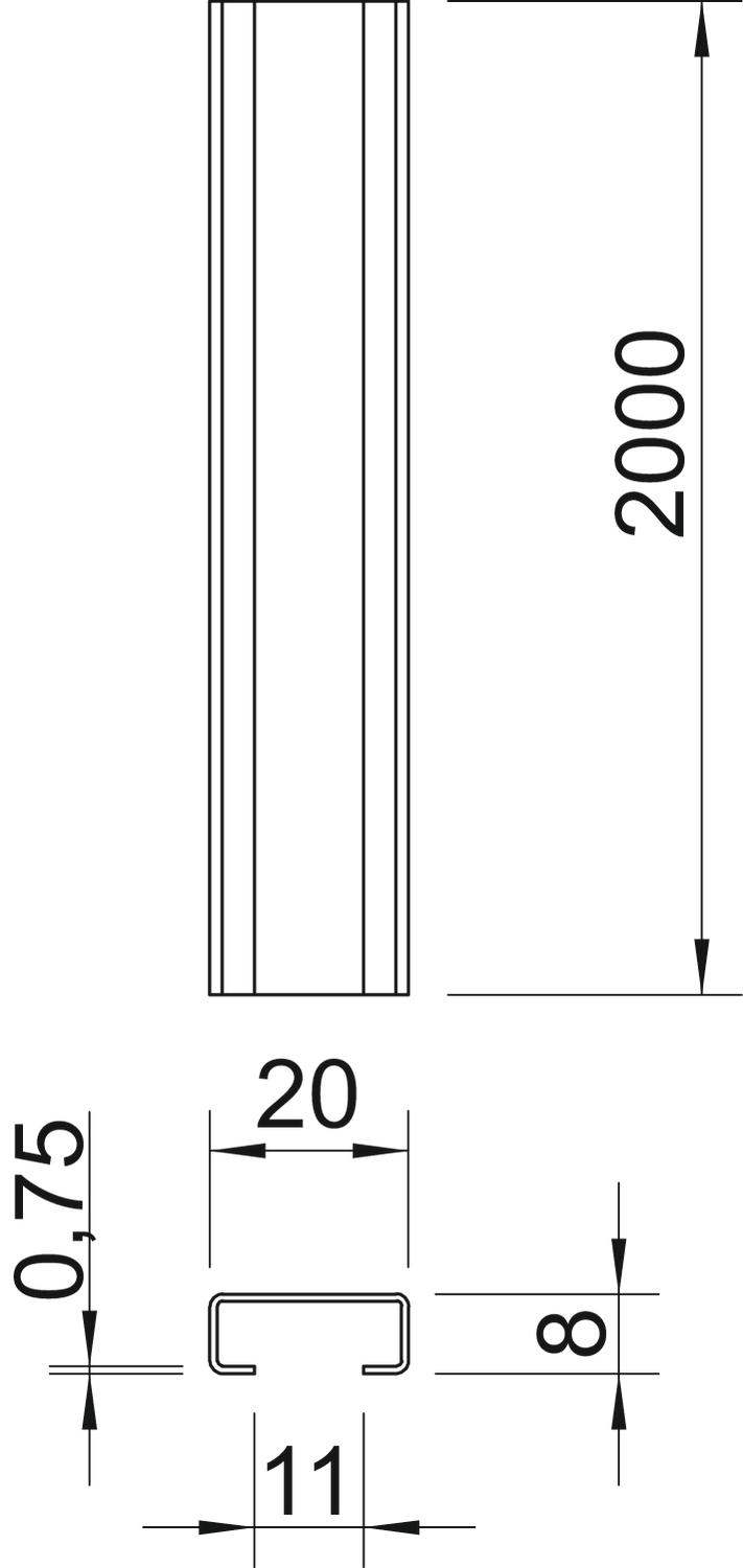 Breakable no Bundle 50 m CO2 Footprint (GWP) Cradle-to-Gate 0,5181 kg CO2e / 1 Meter Dimension 2000x20x8 Dimension L 2000 mm Height 8 mm Length 2000 mm Maintain electrical functions no Material Steel Material thickness 0,75 mm Profile shape C profile Slot width 11 mm Static value A 0,3 cm² Static value ly 0,03 cm⁴ Static value lz 0,17 cm⁴ Static value Wy 0,03 cm³ Static value Wz 0,17 cm³ Surface Strip galvanized Type of perforation Without Version for Single profile Width 20 mm With perforation no With toothing no - All types