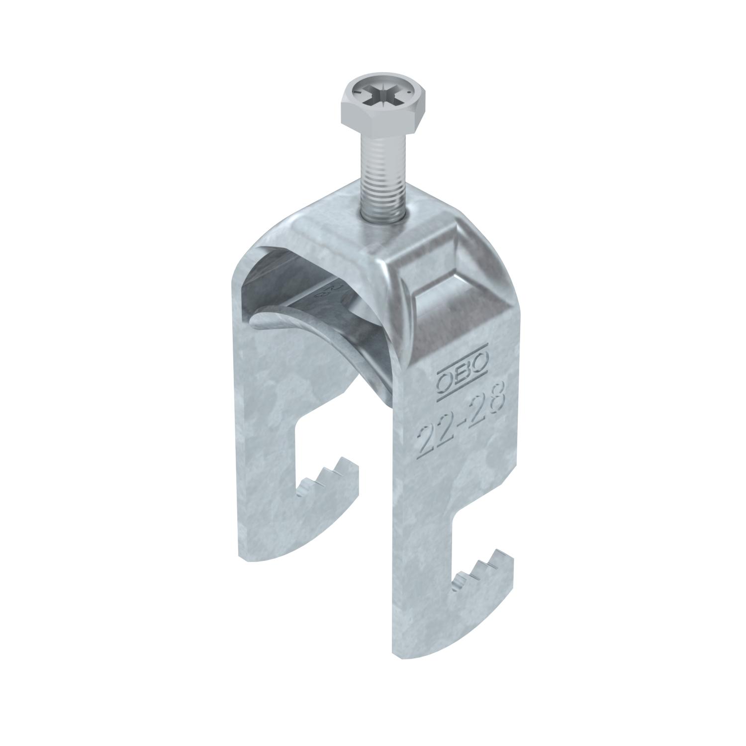 Clamping range D, max. 28 mm Clamping range D, min. 22 mm CO2 Footprint (GWP) Cradle-to-Gate 0,1596 kg CO2e / 1 Piece Dimension 22-28mm Dimension A 22,5 mm Dimension B 33 mm Dimension C 28 mm Dimension G (mm) M6 Dimension H 64 mm Dimension L 34 mm Dimension t 2 mm For pipe diameter, max. 28 mm For pipe diameter, min. 22 mm Halogen-free yes Height 64 mm Length 22,5 mm Length of external dimensions 28 mm Material Steel Material addition Steel Material of trough Steel Max. Tightening torque 3 Nm Mounting type Flat profile Number of cables/pipes 1 Plate thickness 2 mm Slot width 10 mm Surface Hot-dip galvanised Surface addition hot galvanised Thread M6 Width 33 mm With counter-trough no With metal trough yes - All types