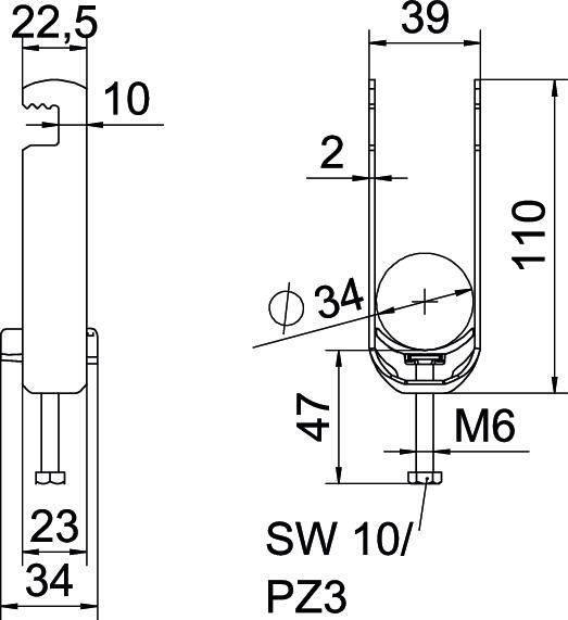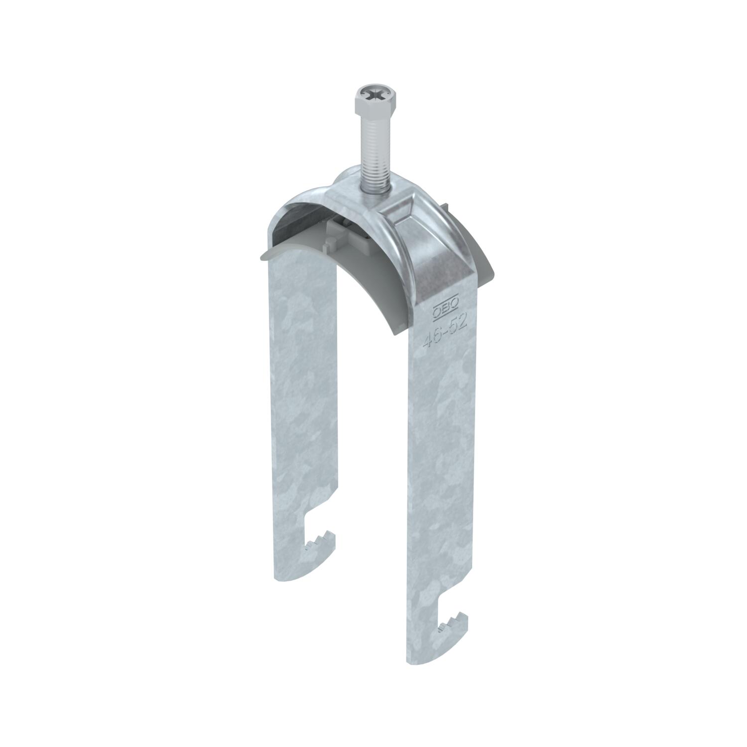 Clamping range D, max. 52 mm Clamping range D, min. 46 mm CO2 Footprint (GWP) Cradle-to-Gate 0,4034 kg CO2e / 1 Piece Dimension 46-52mm Dimension A 25 mm Dimension B 57 mm Dimension C 40 mm Dimension G (mm) M8 Dimension H 148 mm Dimension L 45 mm Dimension t 2 mm For pipe diameter, max. 52 mm For pipe diameter, min. 46 mm Halogen-free yes Height 148 mm Length 25 mm Length of external dimensions 40 mm Material Steel Material addition Steel Material of trough Plastic Material quality of trough Polypropylene Max. Tightening torque 5 Nm Mounting type Flat profile Number of cables/pipes 2 Plate thickness 2 mm Slot width 10 mm Surface Hot-dip galvanised Surface addition hot galvanised Thread M8 Width 57 mm With counter-trough no With plastic trough yes - All types