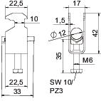 Clamping range D, max. 12 mm Clamping range D, min. 8 mm CO2 Footprint (GWP) Cradle-to-Gate 0,1646 kg CO2e / 1 Piece Dimension 08-12mm Dimension A 22,5 mm Dimension B 17 mm Dimension C 34 mm Dimension G (mm) M6 Dimension H 42 mm Dimension L 35 mm Dimension t 1,5 mm For pipe diameter, max. 12 mm For pipe diameter, min. 8 mm for rail with slot width (with interval), max. 17 mm for rail with slot width (with interval), min. 16 mm Halogen-free yes Height 42 mm Length 22,5 mm Length of external dimensions 34 mm Material Aluminium Material addition Aluminium Material of trough Plastic Material quality of trough Polypropylene Max. Tightening torque 2 Nm Mounting type Profile rail Number of cables/pipes 1 Plate thickness 1,5 mm Slot width 10 mm Surface addition Untreated Thread M6 Width 17 mm With counter-trough no With plastic trough yes - All types