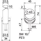 Clamping range D, max. 40 mm Clamping range D, min. 34 mm CO2 Footprint (GWP) Cradle-to-Gate 0,163 kg CO2e / 1 Piece Dimension 34-40mm Dimension A 22,5 mm Dimension B 45 mm Dimension C 34 mm Dimension G (mm) M6 Dimension H 74 mm Dimension L 47 mm Dimension t 2 mm For pipe diameter, max. 40 mm For pipe diameter, min. 34 mm for rail with slot width (with interval), max. 17 mm for rail with slot width (with interval), min. 16 mm Halogen-free yes Height 74 mm Length 22,5 mm Length of external dimensions 34 mm Material Steel Material addition Steel Material of trough Plastic Material quality of trough Polypropylene Max. Tightening torque 3 Nm Mounting type Profile rail Number of cables/pipes 1 Plate thickness 2 mm Slot width 10 mm Surface Hot-dip galvanised Surface addition hot galvanised Thread M6 Width 45 mm With counter-trough no With plastic trough yes - All types